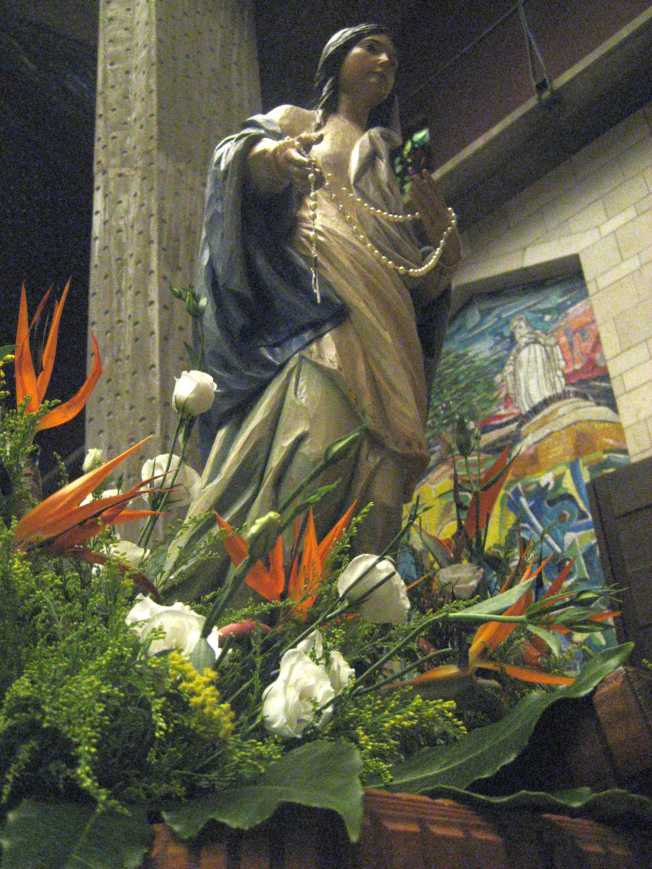 The Basilica was a mob scene during the day, packed with large umbrella-waving tour groups, so it was a special treat to go at night and find the doors open. Me, Mary, and the rehearsing organist had it all to ourselves.