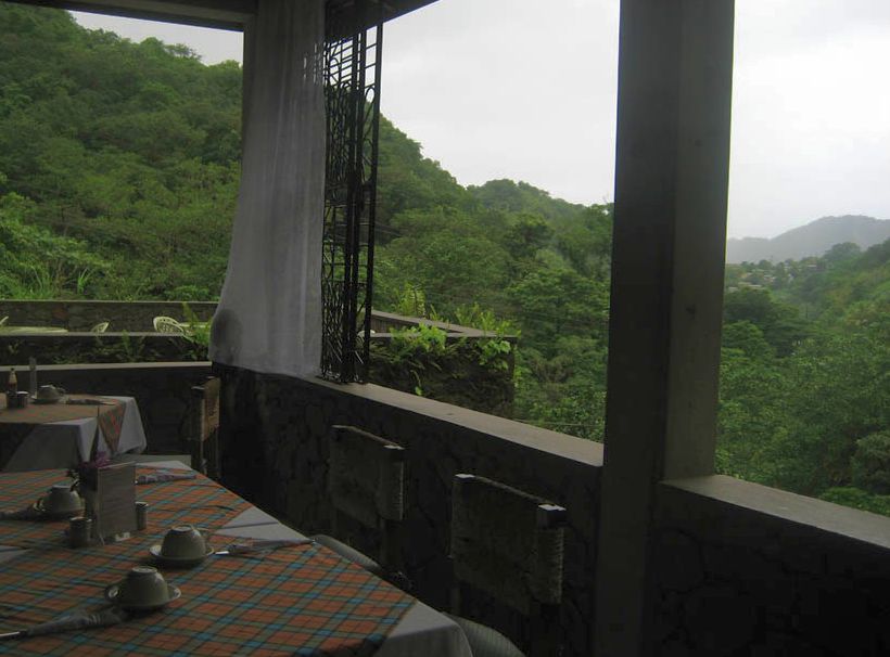 View of the Roseau River Valley from the open-air dining area.