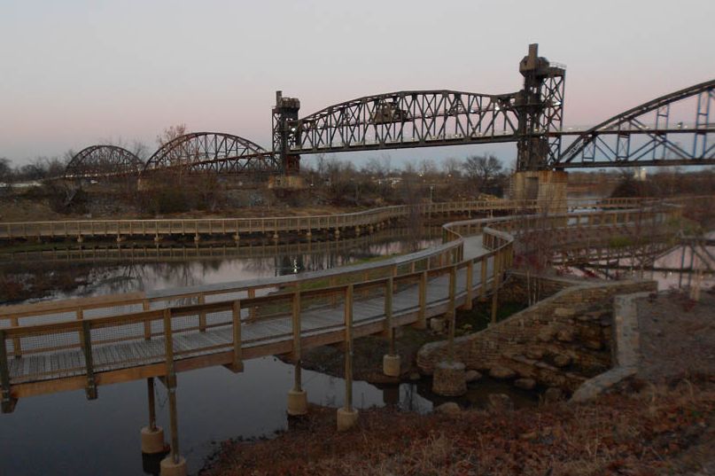 Old railway bridge now pedestrian walkway was dedicated in 2011, completing 14 miles of walking / biking trails.