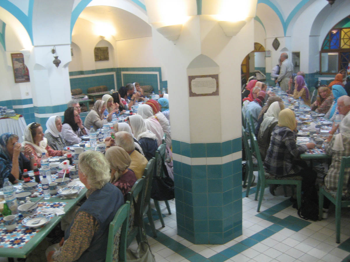 Rows and rows of tourist headscarves in the Hammam-e Khan restaurant, a restored underground hammam. When we first arrived, they told us there was no room. But our local guide, Mr. Sakhi fixed that.
