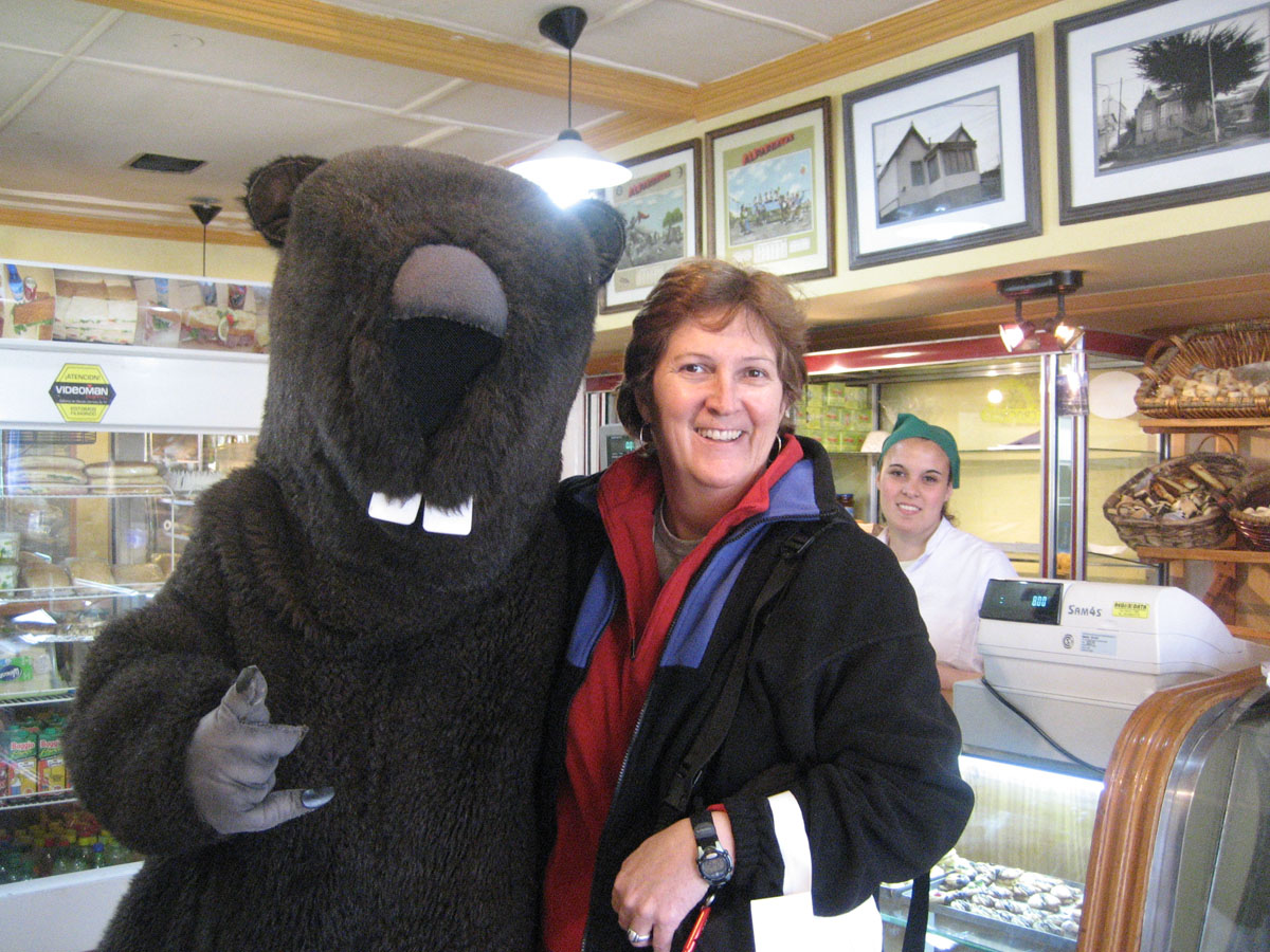 Caught red-handed in my favorite cookie store in Ushuaia! They sold cookies called "Alfajores," two shortbread cookies sandwiched together "Oreo-style" with Dulce de Leche (caramel) in between, then rolled in coconut. Irresistible!