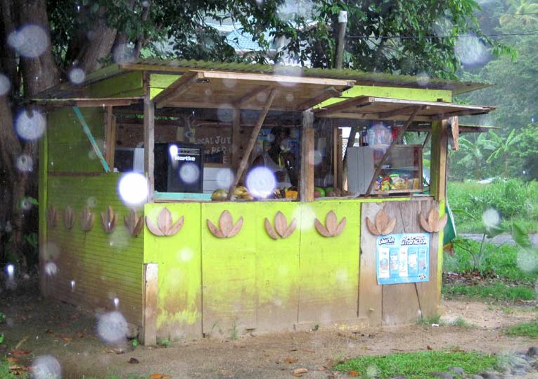 Roadside stand in the rain, where I bought bananas and mango