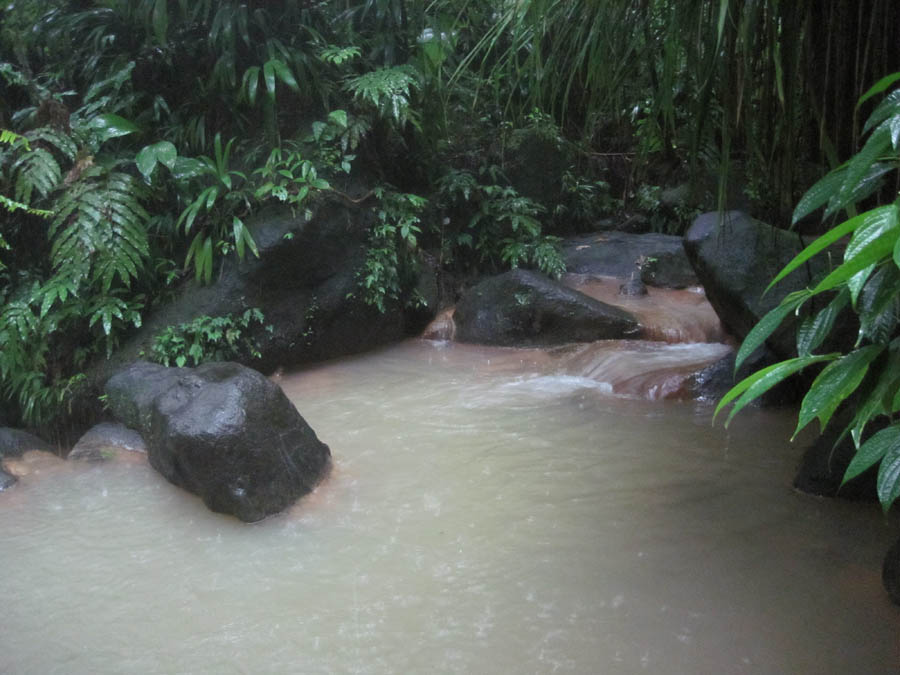 The hot sulfur springs mix with the cool river water to make perfect temperature natural mineral baths, ideal for soaking.
