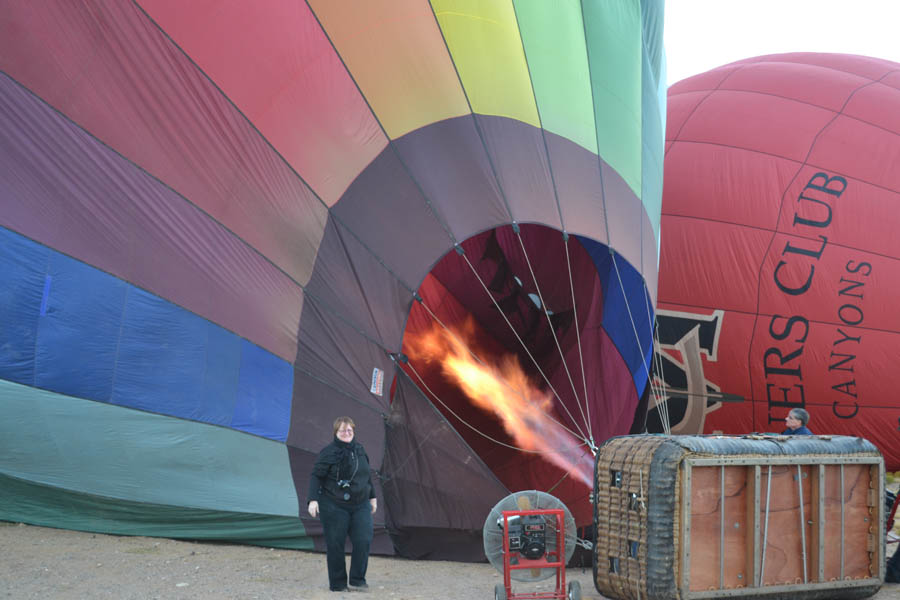 Propane is used to heat the air. An average flight uses about 30 gallons.