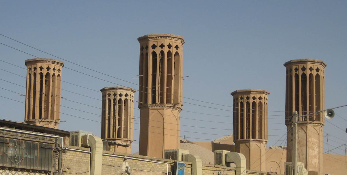 "ab anbar," or water reservoir built in about 1580, the reservoir used to store water for most of the town. It is a rare sight to see this many "badgirs" or wind tunnels on one building.