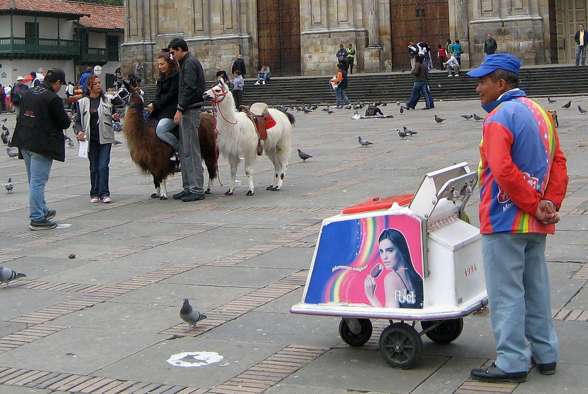 Pose for a photo on a llama, or eat an ice cream -- neither of which sounds like a likely offering in the chilly Plaza de Bolivar.