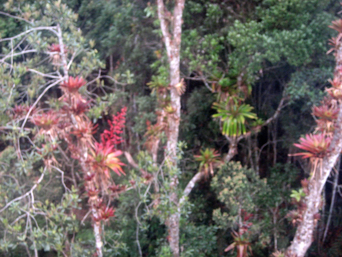 Apologies for the blurry photo, but I tried to hurriedly grab my camera to snap pictures of these blooming bromeliads in the trees as I passed over the tree tops in the cable car.
