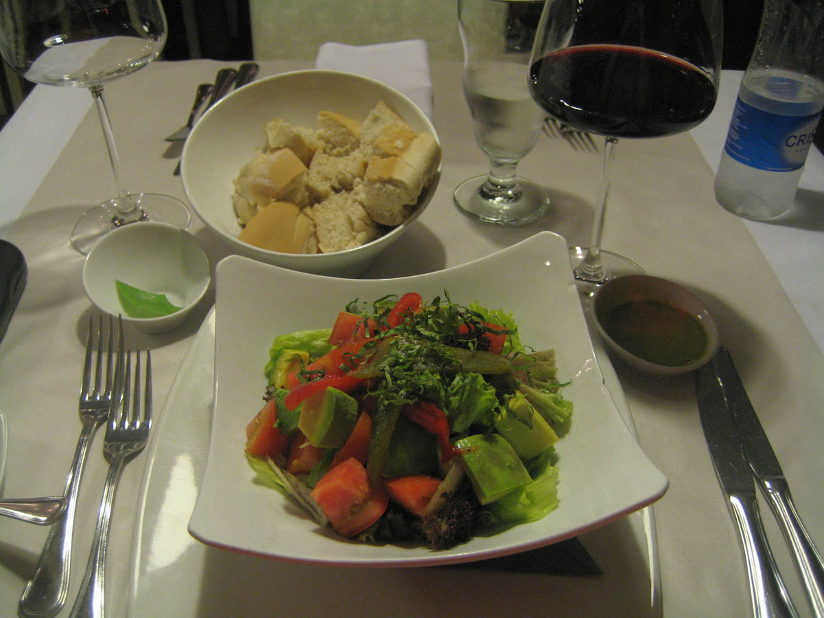 My first dinner in Cartagena was at "El Santissimo," described as an upscale, casual restaurant serving "nuevo Caribbean" fare. I started out with a very fresh avocado and tomato salad with basil vinaigrette.