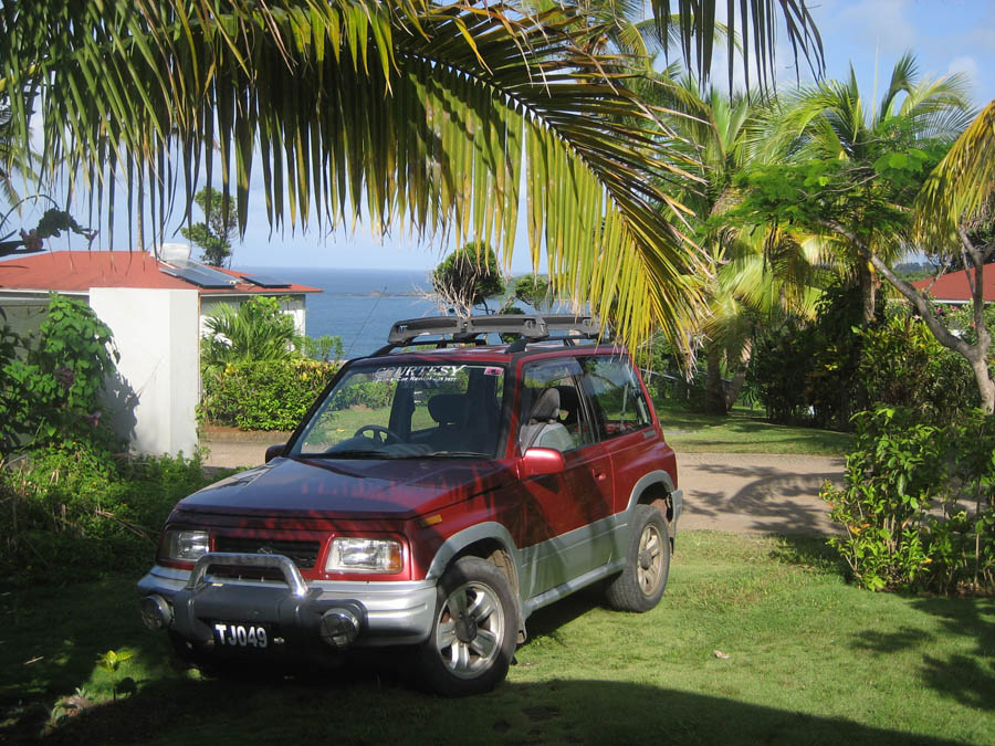 My Suzuki Sidekick parked in front of Cottage #3 at Sea Cliff Cottages
