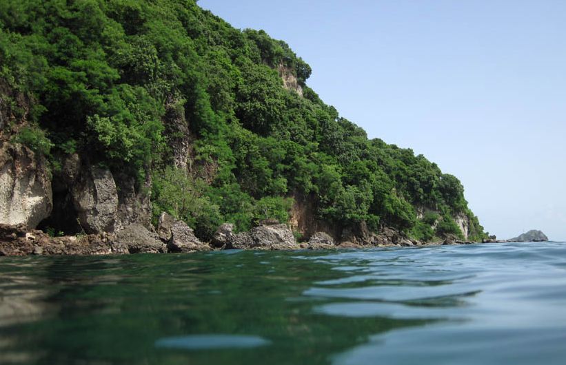 View of the shoreline near Champagne Beach.