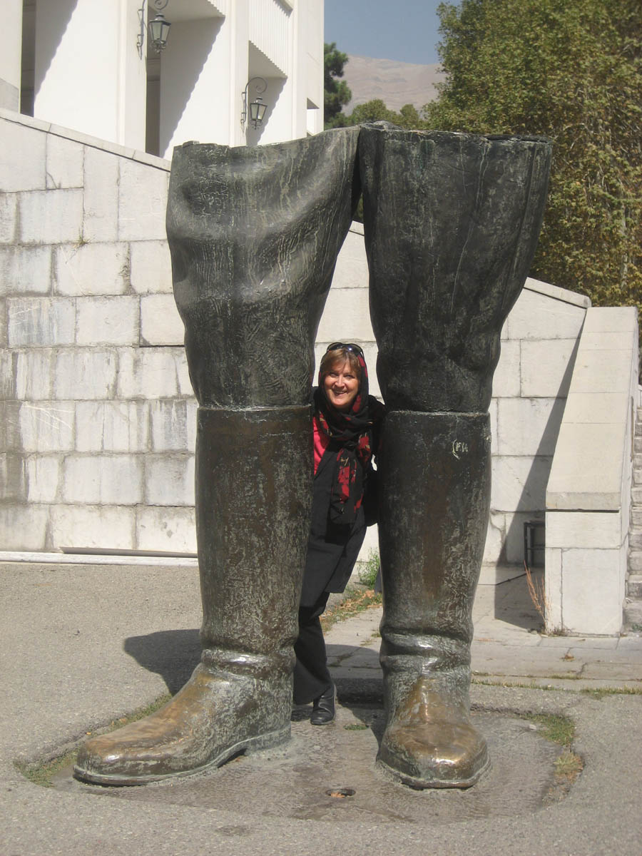 During the 1979 revolution when the Shah was deposed, his giant statue was taken down. The legs and boots are all that remain.