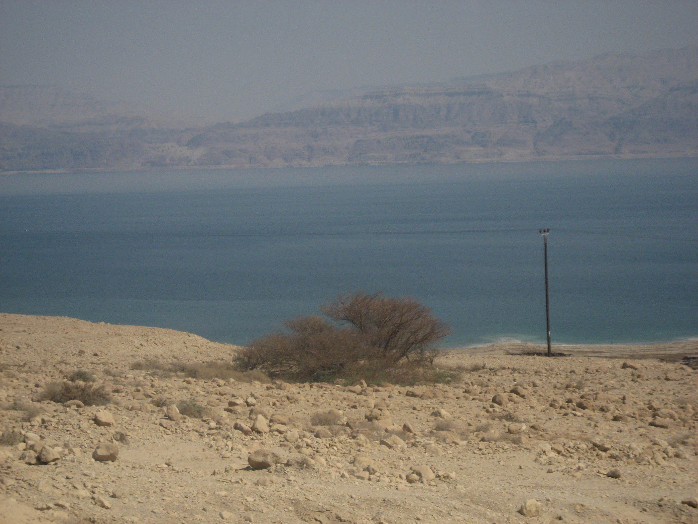 The bus ride continued for quite some time along the shoreline of the Dead Sea. (Taken from the bus window.)