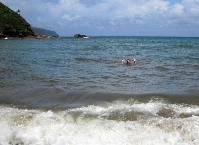 I have the bay all to myself for swimming. It is the perfect temperature, but a little too muddy from the rain for snorkeling.
