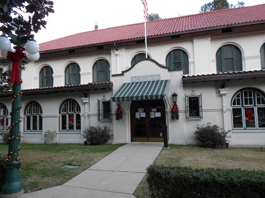 The Hale Bathhouse, originally built from brick in 1892, but later covered in stucco to blend better with the Spanish Revival style.